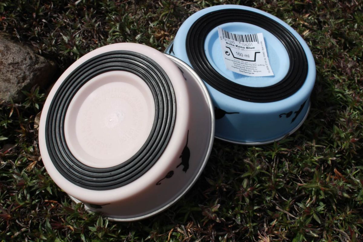 Edelstahlnapf mit Antirutschgummi.