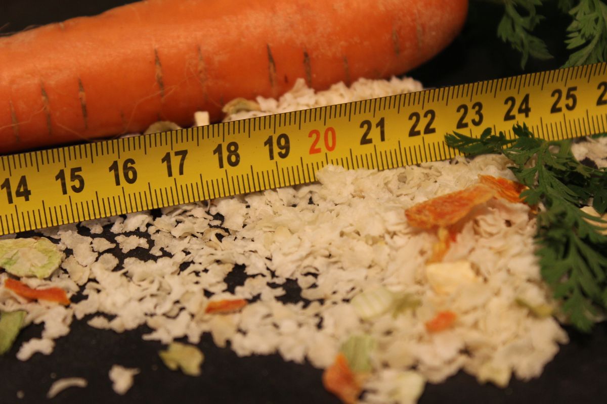 doppelte Menge der Empfehlung der Gemüseflocken bzw. Obst- & Gemüseflocken geben.