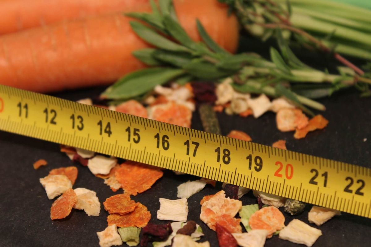 In diesem Fall ca. 15% von der Futterempfehlung des Hauptfutters abziehen und die