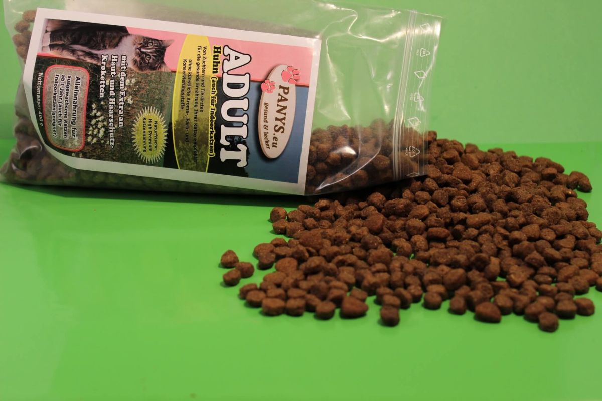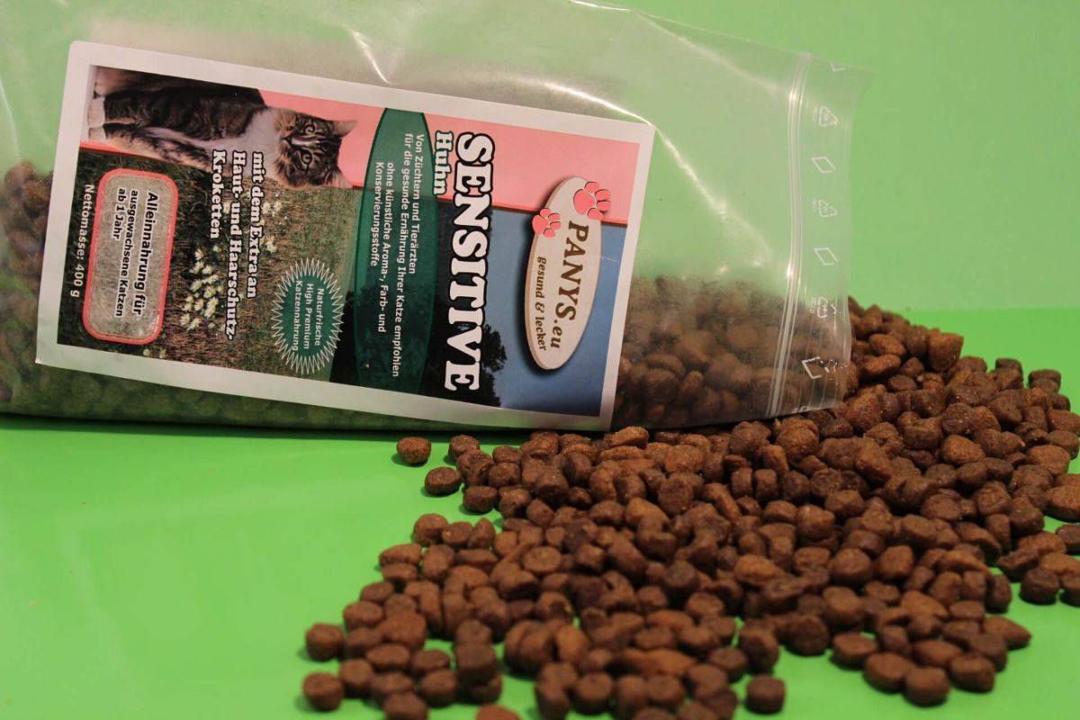 Fleischanteil: nur Huhn Alleinnahrung für alle weniger aktiven, sowie empfindlichen Katzen mit Neigungen zu Futtermittelunverträglichkeiten und für ältere Katzen. Ohne zugesetzte künstliche Aroma- und Farbstoffe - mit dem Extra an Haut- und Haarschutz-Kroketten. Geringe Haarballenbildung und optimale Ausscheidung bereits entstandener Haarballen mit Hilfe von Pflanzenfasern. Von Züchtern und Tierärzten für die fortschrittliche Ernährung Ihrer Katze empfohlen. PANYS Trockennahrung ist ernährungsphysiologisch ausgewogen und enthält alle wichtigen Inhaltsstoffe, die Katzen für ein aktives und glückliches Leben benötigen.  Vorteile des PANYS Trockenfutters:   Deutsche Qualität.   Ohne Zusatz künstl. Aroma- & Farbstoffe.   High-Premium-Qualität   Pre-Probiotika - FOS (Fructo-Oligosaccharide)   Auch für ernährungssensible Katzen.   Zu 100 % ohne Gentechnologie.   Zu 100 % ohne Tierversuche.