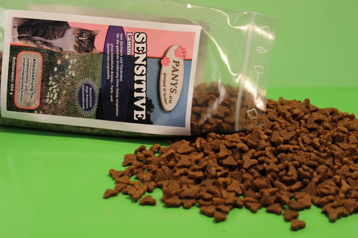 Fleischanteil: nur Lamm Alleinnahrung für alle weniger aktiven, sowie empfindlichen Katzen mit Neigungen zu Futtermittelunverträglichkeiten und für ältere Katzen. Ohne zugesetzte künstliche Aroma- und Farbstoffe - mit dem Extra an Haut- und Haarschutz-Kroketten. Geringe Haarballenbildung und optimale Ausscheidung bereits entstandener Haarballen mit Hilfe von Pflanzenfasern. Von Züchtern und Tierärzten für die Ernährung Ihrer Katze empfohlen PANYS Trockennahrung ist ernährungsphysiologisch ausgewogen und enthält alle wichtigen Inhaltsstoffe, die Katzen für ein aktives und glückliches Leben benötigen.  Vorteile des PANYS Trockenfutters:   Deutsche Qualität.   Ohne Zusatz künstl. Aroma- & Farbstoffe.   High-Premium-Qualität   Pre-Probiotika - FOS (Fructo-Oligosaccharide)   Auch für ernährungssensible Katzen.   Zu 100 % ohne Gentechnologie.   Zu 100 % ohne Tierversuche.